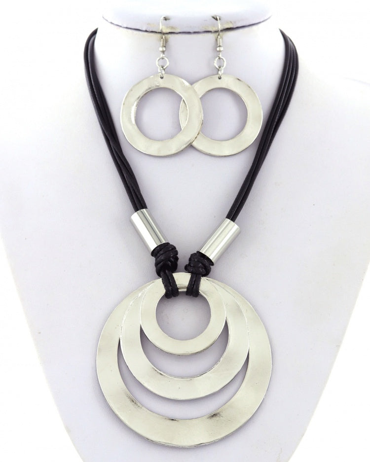 Silver disc accented with a leatherette closure.
